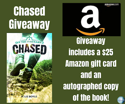 To celebrate her tour, M. Liz is giving away the grand prize of a signed copy of Chased and a $25 Amazon gift card!!