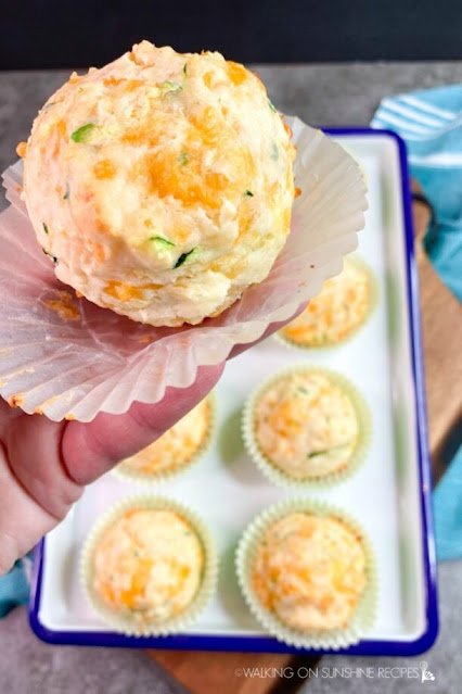 Walking On Sunshine gave us this tasty Bisquick zucchini cheddar muffin recipe.