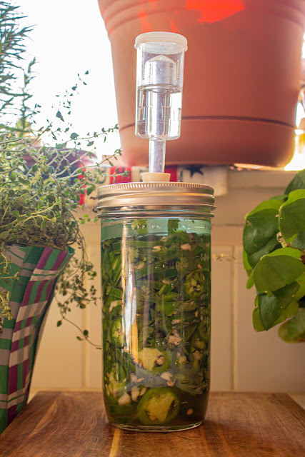 We have used the Fermentools kit quite a bit in the past, so I was super happy to get a second set to have on hand. With our current move, I still have things in boxes, so I haven't unearthed my other set just yet. However, the idea of having two sets is something I like, because with our old set, we were constantly making homemade Kimchi and over time, the rubber stopper has been stained orange due to the red pepper paste that is used. Now I can continue to make Kimchi with the stained stopper and then make other stuff such as Dilly Beans (fermented dill green beans), garlic and cilantro jalapenos, and other non staining stuff in the 2nd.