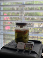 Once we received the Starter Kit in the mail and it was game on to figure out what exactly she would be making. She decided she wanted to make pickles so first up was to find a wide mouth mason jar because it is not included in the Starter Kit. I thought I had one here but it is MIA and we could only find small sized jars in the house. In a normal world, pre-Corona virus, we could just pop into the store and pick one up, but this is not the case now. We had the worst luck trying to find a jar and so we ended up improvising with and retrofitting a jar that we did have at home. Not the best option, but desperate times call for desperate measures.