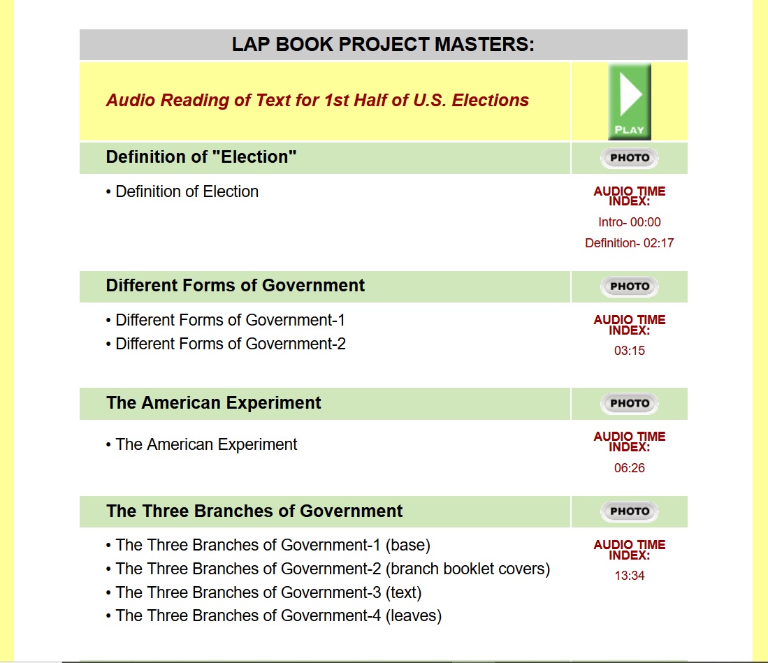 between, this hands on learning project breaks it all down for students to understand. While learning important terms such as what an incumbent is, what is a caucus, and what a candidate's platform is, students create a hands on lapbook filled with hands on activities to help reinforce what they learn about elections and political candidates. U.S. Elections Lap-Pak is typically best suited for elementary and middle-school students between the third and eighth grades. Like other Home School in the Woods material, the U.S. Elections Lap-Pak is a digital file that is installed on the computer. While the digital file must be downloaded (although a physical CD option can be purchased from the company) from the internet, once installed on the computer, no internet access is needed to use the material. All material, including instructions for project assembly, printable masters for each activity, audio file and text material are easily accessed.