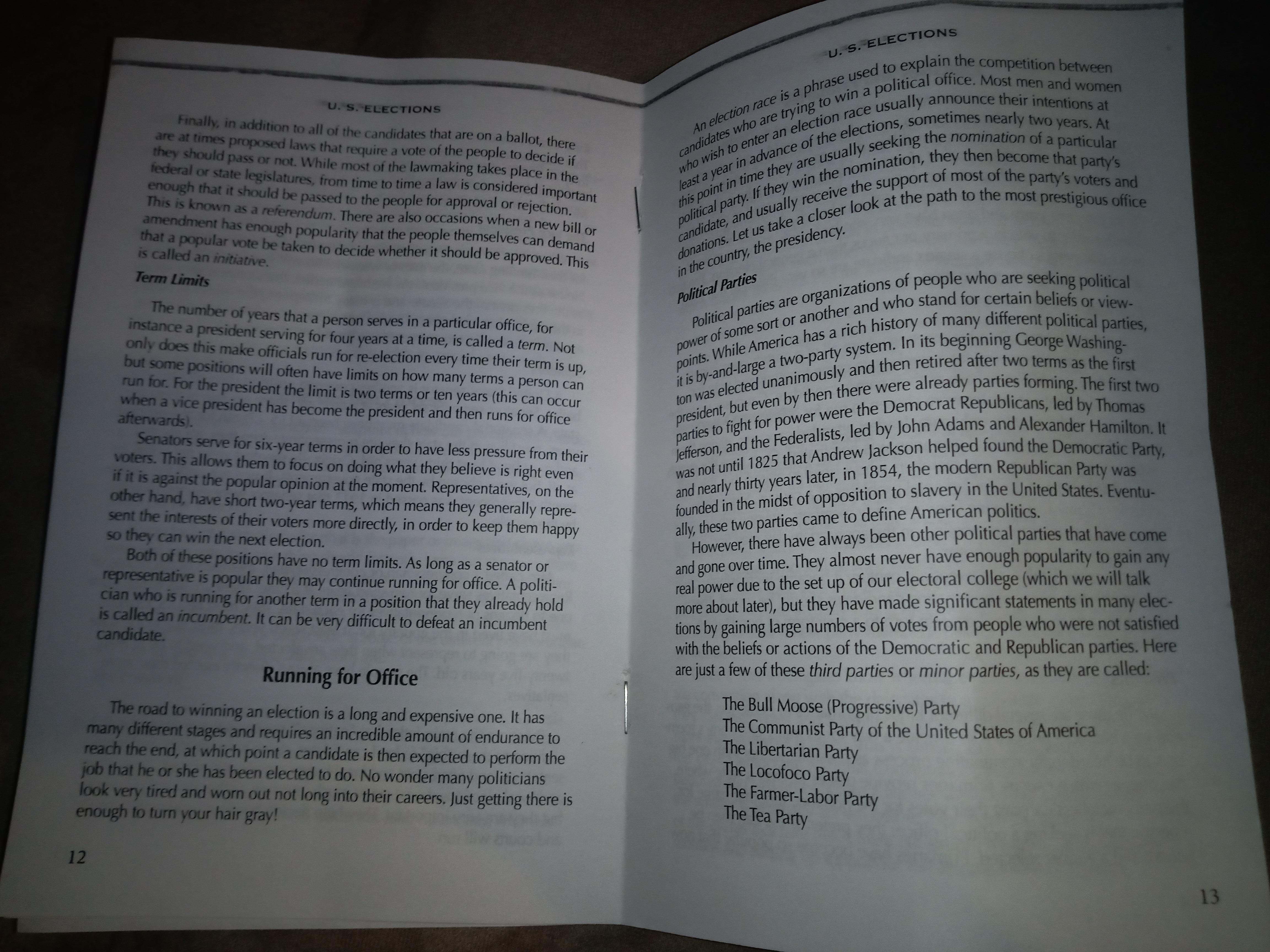 The material presented is non bias and does not lean towards any one political party but instead just presents the material in a general term. Current candidates running for office at the present are not included. Instead, the Lap-Pak is a very well rounded, general government introduction that can be used during any election process and is not limited to the only upcoming election.