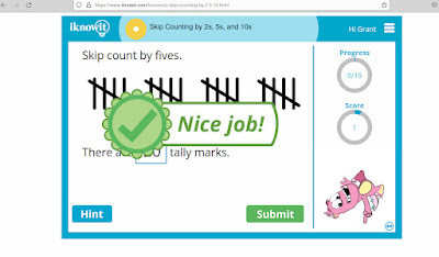 Above you can see that G answered his question correctly in the Skip Counting lesson and the character on the bottom is flipping for him!