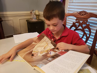 Saturday was a busy day of errands for us, but one was particularly fun and could hardly be called an errand: a local homeschooling store is moving locations, so was having a 25%-off-everything sale, when its prices on used curriculum are already 25-75% off retail. I enjoyed buying some books that the kids and I are still poring over.