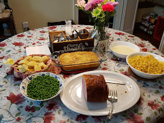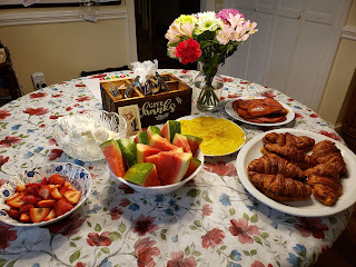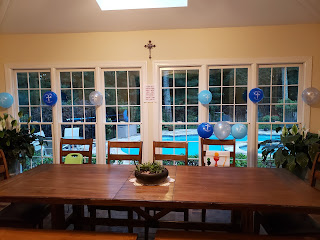 After Mass, we ordered delivery from a favorite pizza restaurant. Our priest was even able to stop by in the afternoon and enjoy a slice and conversation with us for about an hour: that was such an honor and a treat!