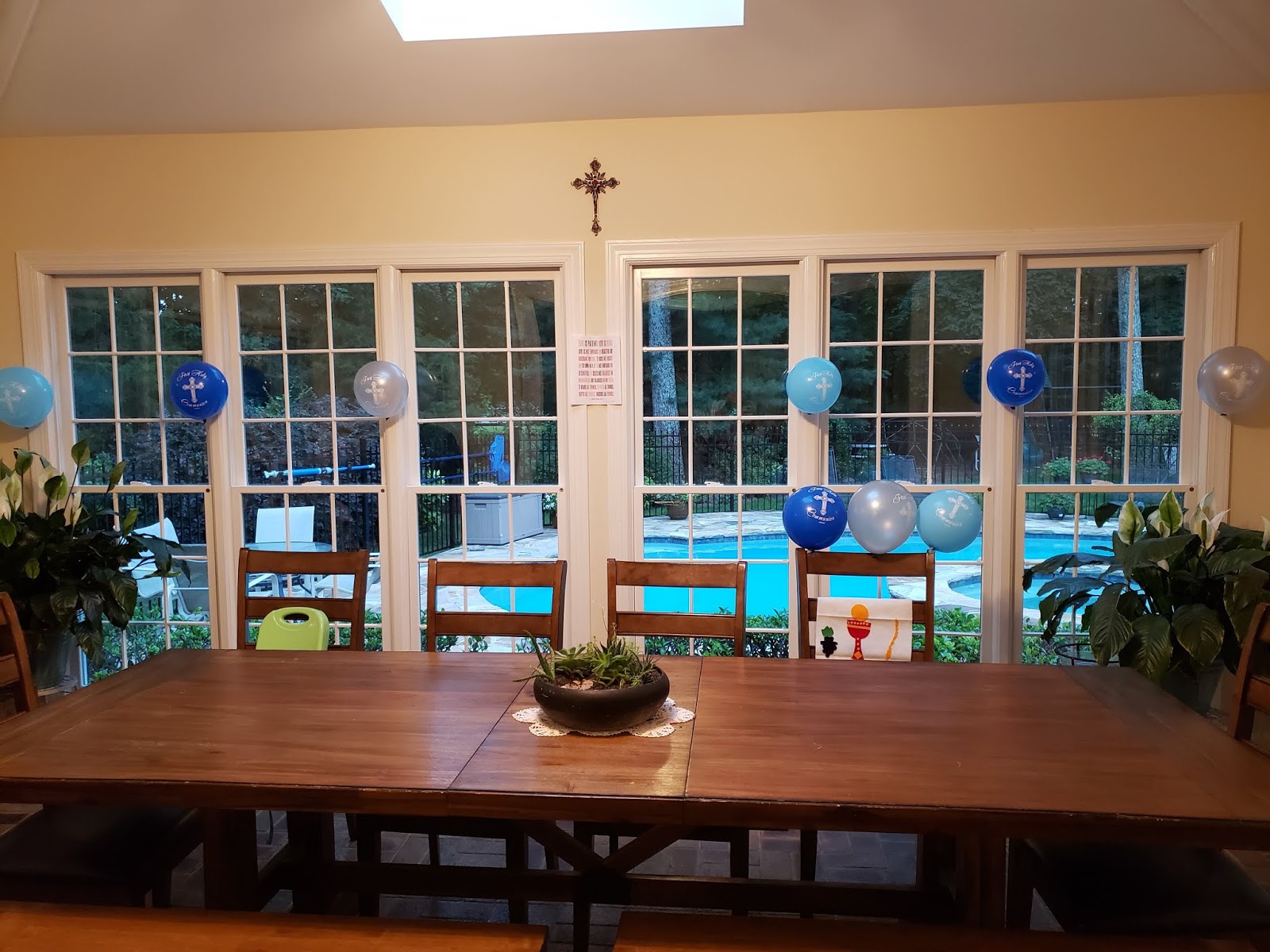 After dinner, the kids went swimming and I served cookies and ice cream to round out the fun. When they all went to sleep, I decorated the eating area for Joseph to see upon waking!