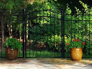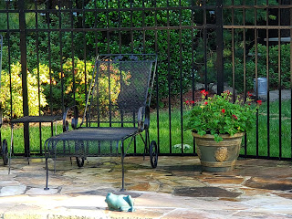 In the evening, children played outdoors while I transitioned my annuals from the flagging pansies to the red geraniums for summer.
