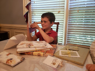 Joseph opened his many handmade cards from siblings and gifts from loved ones.
