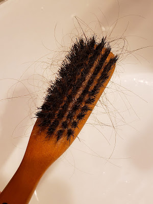 On Monday, hair loss accelerated exponentially and there was much hair on Thomas's pillow case and sheet. I would wash them again before bedtime.From the front, Thomas's hair might look a little thin and fluffy but almost normal at a glance.