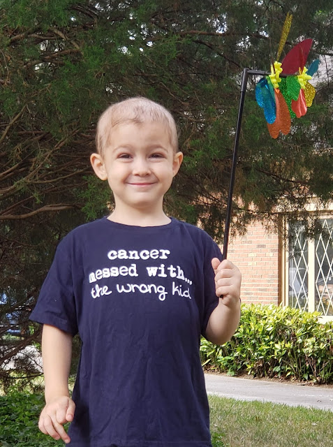 In the following couple of weeks, Thomas's hair remained like peach fuzz without falling out completely. He did his second cycle of chemotherapy, so it may fall out all the way two to three weeks after receiving that chemo, in which case I will update this blog post. The oncologist did say that some children retain some hair, either because of their particular hair type or because of their lower dosages of chemotherapy.
