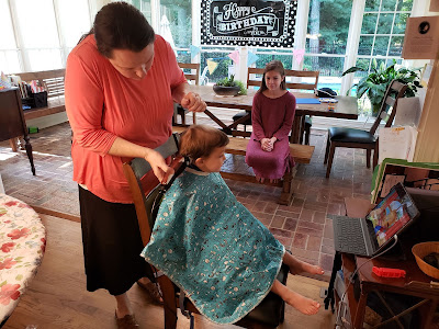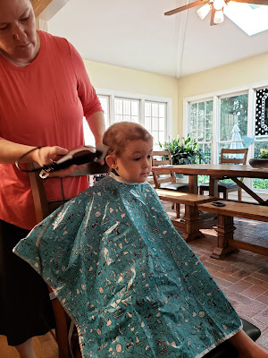 Of note on this day was that in the evening I was helping Thomas into his pajamas and he told me out of nowhere, "Mama! I'm not sad about my hair falling out anymore!" What his deep thoughts were, I don't know, but he was not feeling sorrowful at that time.