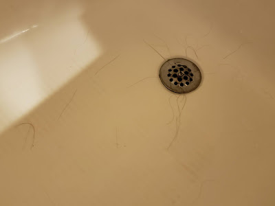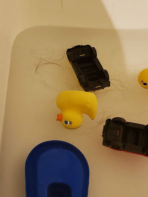 | Hairs in the tub after washing his hair |