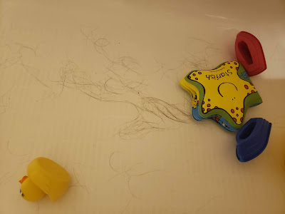 | Hair in the tub during bath time |