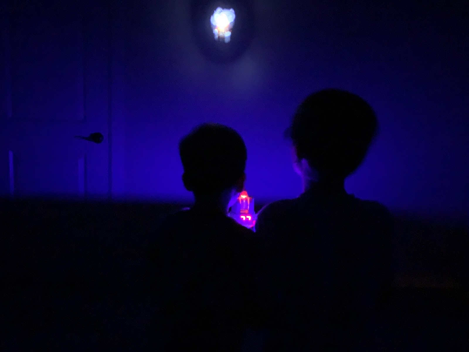 ProjeX is perfect for family fun, but it has also been a lifesaver when my husband and I both had virtual meetings for work at the same time and needed our boys to calmly play on the opposite side of our house. It's battery-powered and portable such that you play on any blank wall, including garage walls or even in on the side of your house. When my husband and I both have virtual meetings at the same time, we send our children to our bedroom closet to play with our ProjeX. It may seem like an odd place to send them, but if you work from home with children, you probably understand. This puts three sets of doors between us while we are in meetings on one side of our house and they play games on the other side. This is a lifesaver because our boys quickly get tired of each other when they are together 24/7, but suddenly become best friends again when they get to play the arcade games on ProjeX!