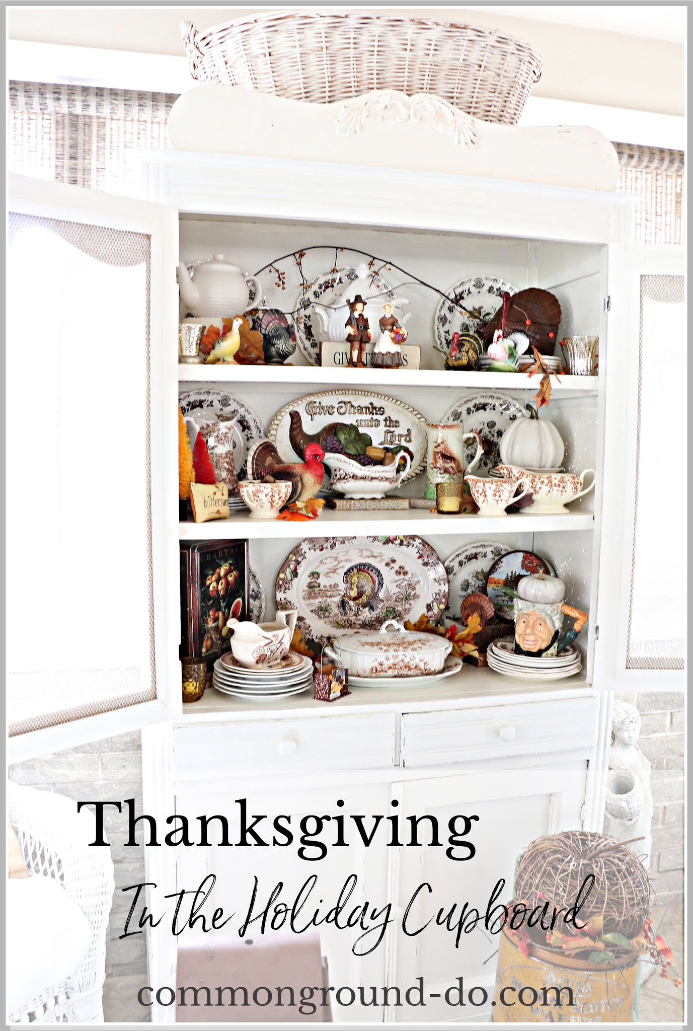 I didn't want to let Thanksgiving pass by without honoring my favorite holiday, so I made sure I decorated the house for Thanksgiving by bringing out a lot of my late Fall and vintage pieces. My Holiday Cupboard is always such fun to create a theme.
