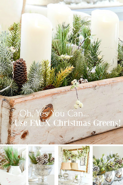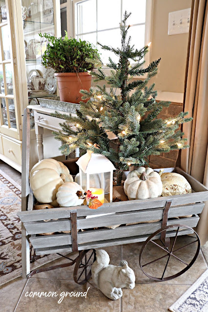 I wanted to go ahead and put out a couple of small Christmas trees in the mix, because I love using late Fall decor with a sprinkling of evergreens.