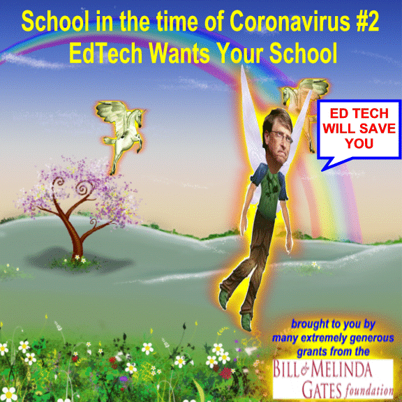School in the time of Coronavirus #2 – EdTech Wants Your School EdTech Positions Itself for Boom Times The Ed-tech industry is jumping into the gap left by closed schools during the coronavirus crisis. Many companies are offering temporary free options for students to use while their schools are closed. We can give them credit for offering a service for free during a crisis, but cynicism from pa