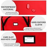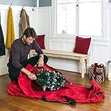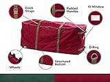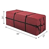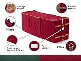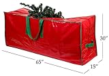 Simple identification festive bright red duffel bag stands out between holiday storage helping you to easily locate your artificial christmas tree storage box an attached card slot lets you know exactly whats inside the storage container for christmas tree Easy access two waydual zipper opens the bag widely for uncomplicated placement and removal no assembly required just unfold and insert your tree for great tree bag storage