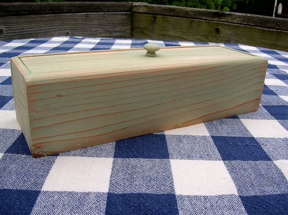 Handmade cedar box with lid. Box has been painted a light sage green and lightly distressed.