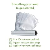 Vacuum sealers preserve food up to 5 times longer than zipper baggies basically depending on the type of food and also wrap valuables and household items away from dust damp humidity Starter kit includes 5 x heatseal bags 78×118 1 x roll 78×78 manufacturers lifetime support