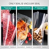 GERYON - Geryon food vacuum sealer fits up to 12 width geryon or other brand vacuum sealer bags and rolls with texture on sides Compact size and lightweight design for easy storage and move around Food vacuum sealer removes air from specially designed bags Multilayer material heat seals to keep air out and prevent freezer burn reduces food waste And cooking and meal preparation will become easier more economical and faster Automatic vacuum sealing operation handsfree and seal indicator lights Use vac seal and seal function to preserve your food Stop function can further control the vacuum pressure