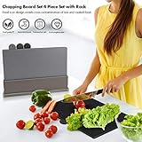 MASTERTOP - Neat system the chopping board set with food icon design avoids cross contamination of raw and cooked food raw meat raw fish vegetables or cooked food Extra 4 colors of flexible plastic mats are provided Easy to identify easy to clean easy to store Organized store the cutting boards for kitchen convenient that each cutting boards can be taken in the separate groove which saves apace The base of the board is detachable for you to clean itThe rack separates the cutting boards from each other allowing air to circulate naturally and draining moisture Premium durable our cutting board are made of highquality and safe material bpa free Theyre textured a little so food doesnt slide around 019 inch thicker cutting boards are more durable than ordinary plastic cutting boards effectively reducing scratches Board sizes 126x 86×019